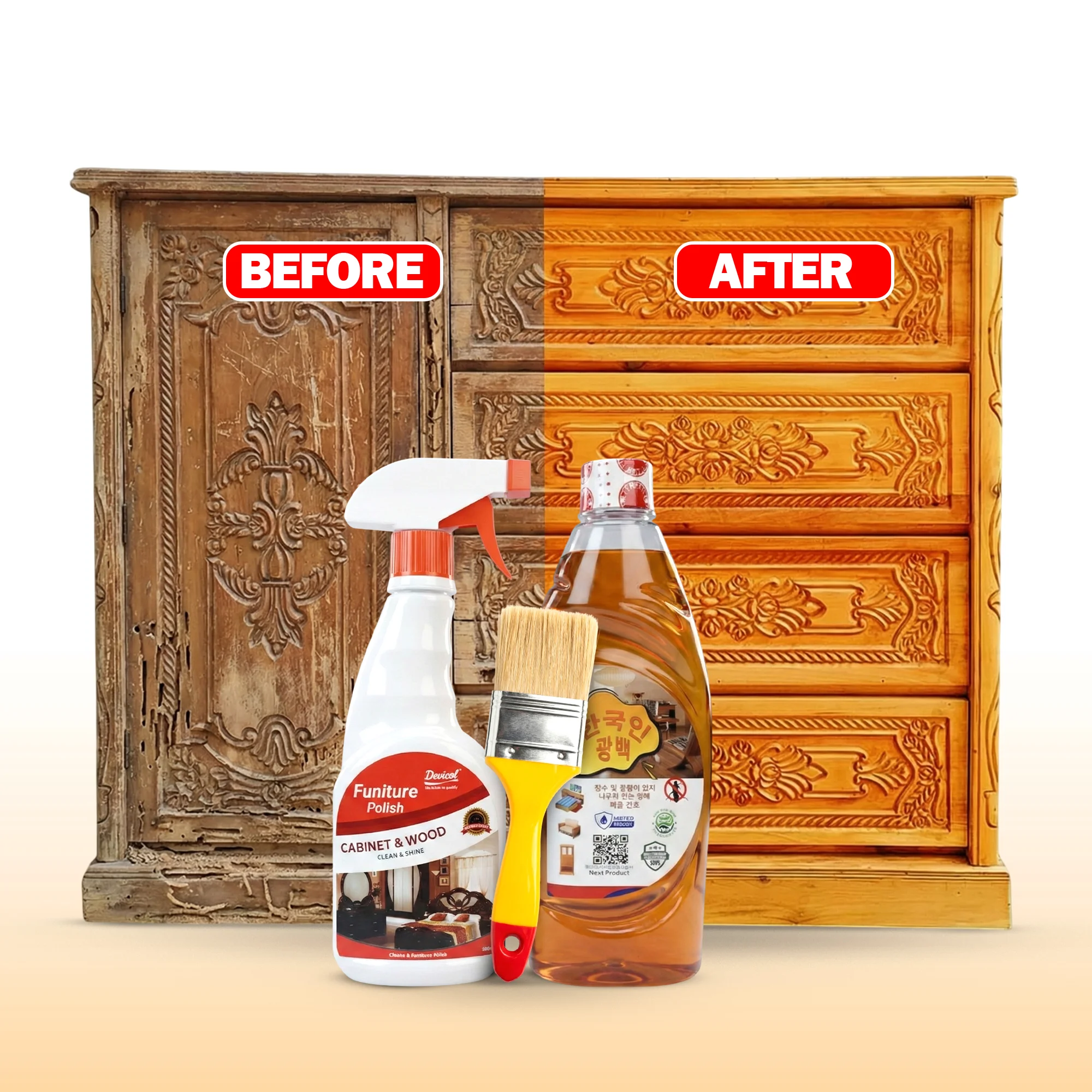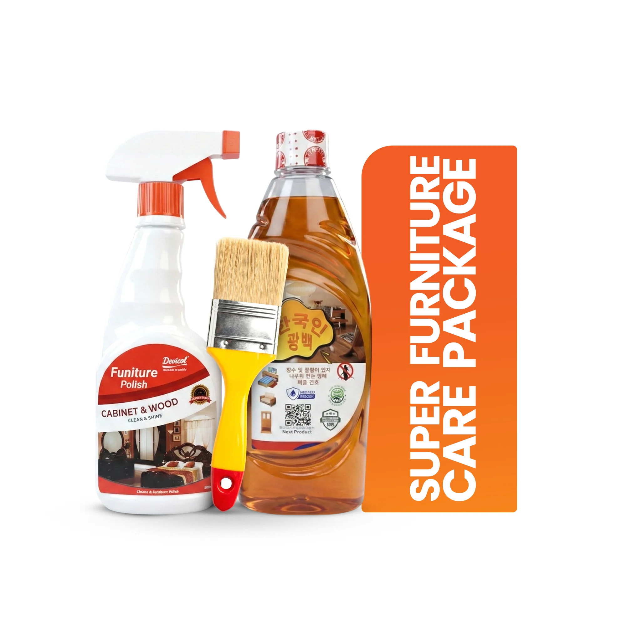 আপনার পুরোনো বা নতুন ফার্নিচারকে নতুনের মতো ঝকঝকে ও দীর্ঘস্থায়ী সুরক্ষা দিতে এই বিশেষ কম্বো প্যাক। এক প্যাকেই ক্লিনিং থেকে শুরু করে প্রিমিয়াম ফিনিশ—সবকিছু!