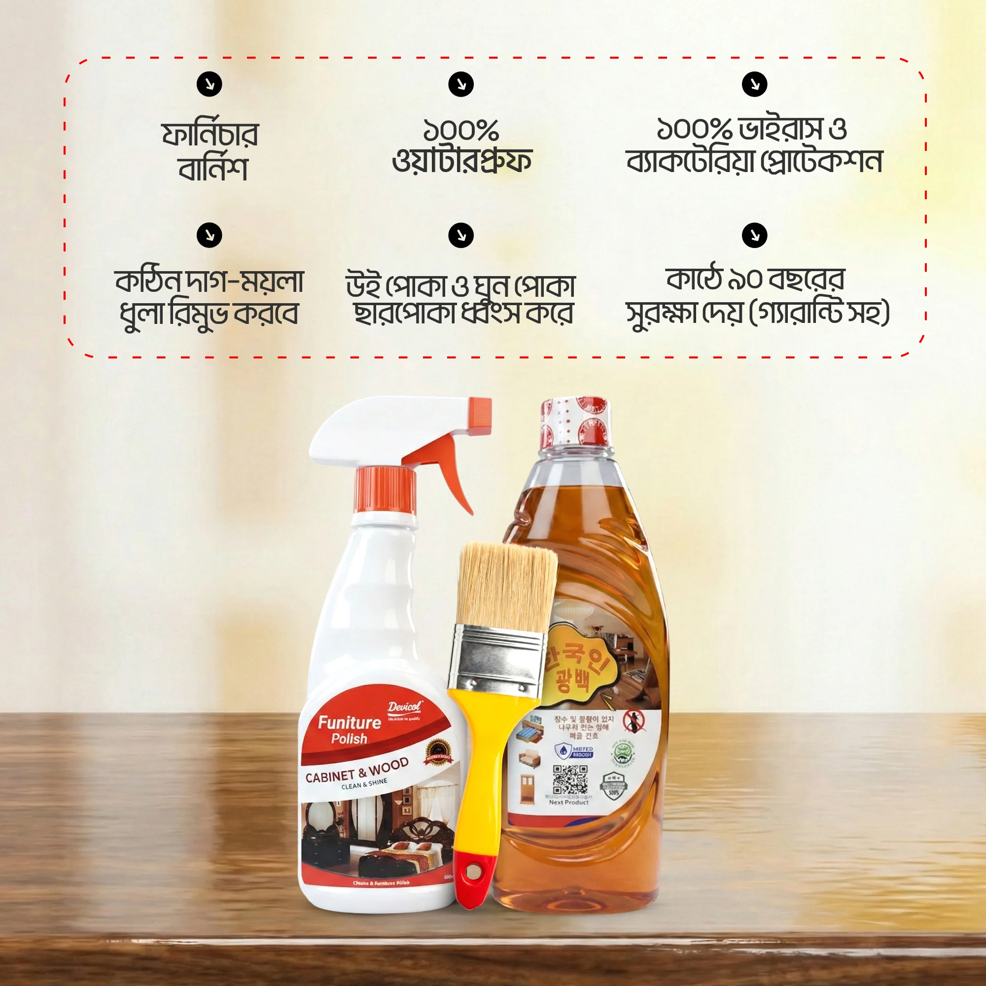 ফার্নিচার ক্লিনার + মাকিন কাপড় + ৫০০ মি.লি. কোরিয়ান বার্নিশ + ১.৫” ব্রাশ